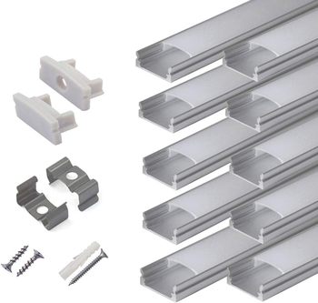 10-Pack 6.6ft/ 2 เมตร U รูปร่าง LED อลูมิเนียมระบบช่องพร้อม Milky ฝาครอบ, โปรไฟล์อลูมิเนียมสําหรับไฟ LED Strip