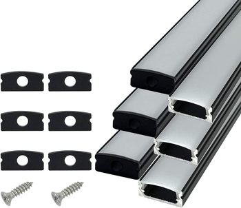 6-Pack 30cm Led kanal difüzör siyah alüminyum Mliky beyaz kapak ile U şekli 17.2x7mm,Led şerit ışık parça ile uç kapakları